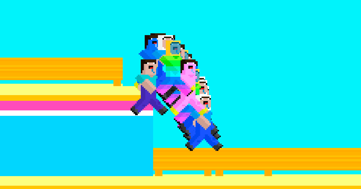 noob guys welcome to the running race between noob and noob's friends. Don't fall down, if you fall, you'll start over. Nobody wants to start over. Are you ready for a race full of noobs? You must collect crowns to get noob costumes. You should be #1 in the noob guys race. you should be the winner of the race, you should buy the best costume.